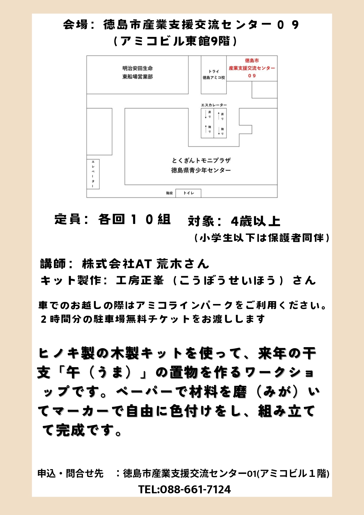 徳島市産業支援交流センター09では12月7日(日曜日)にワークショップを開催します。